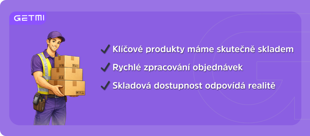 U GETMI.cz tak nenakupujete „na slib“, ale s vědomím, že zboží máme fyzicky k dispozici a připravené k expedici.