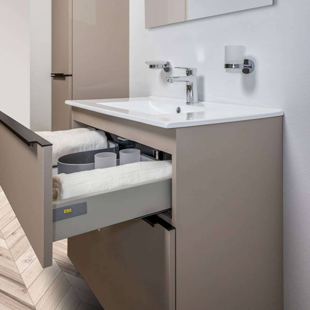 Série Mailo nabízí také vysoké skříňky o výšce 170 cm, které slouží jako ideální doplněk k umyvadlovým skříňkám. Poskytují velké množství úložného prostoru a díky své úzké šířce 35 cm nezatěžují prostor.